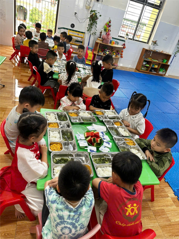 🌻🥦🍒🥗 Trong bữa ăn, các bé ngắm nghía khay cơm, trò chuyện với bạn bên cạnh về sự khác lạ của bữa ăn hôm nay không dùng chén mà dùng khay nhé!. Mỗi bé tự lấy muỗng để ăn cơm. Trong bữa ăn, cô giáo luôn niềm nở, chăm sóc trẻ ân cần. Bữa ăn diễn ra trong không khí tươi vui, thân thiện, bạn nào cũng ăn hết suất cơm của mình.
