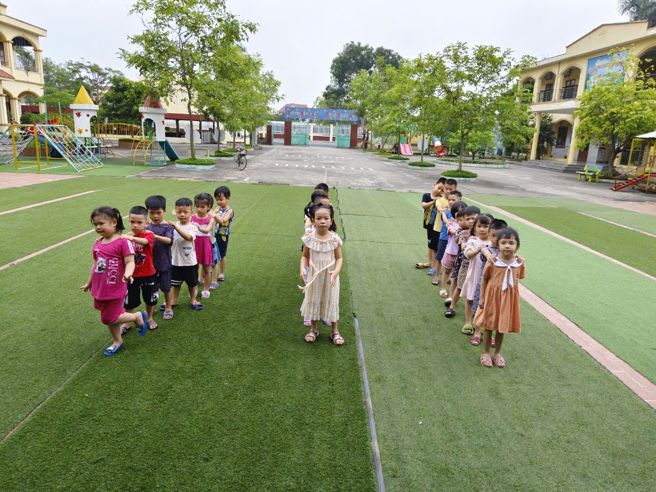 Các bạn ơi! Cùng tập thể dục với chúng mình nhé. Chúng mình là tập thể lớp 5A2 trường MN Tân Dân