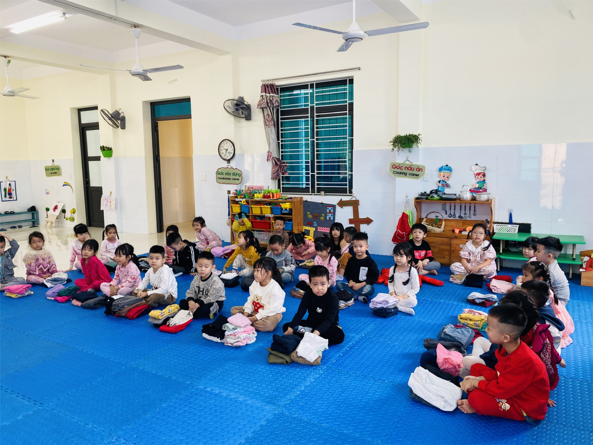 Các bạn lớp 5A4 trường mầm non Tân Dân khi gấp từng chiếc áo, chiếc quần thật ngay ngắn và gọn gàng là mong mình góp một chút công sức để gửi đến các bạn thân yêu vùng cao có thêm bộ quần áo ấm hơn trong mùa đông. Ở trường mình, các cô giáo và các bạn đang phát động “Quyên góp quần áo cũ – Gửi yêu thương đến vùng cao”. Các bé hãy cùng ba mẹ chọn ra những bộ quần áo, giày dép, khăn mũ… mà mình không còn dùng nữa, gấp gọn gàng và mang đến trường để gửi tặng các bạn nhỏ nhé!