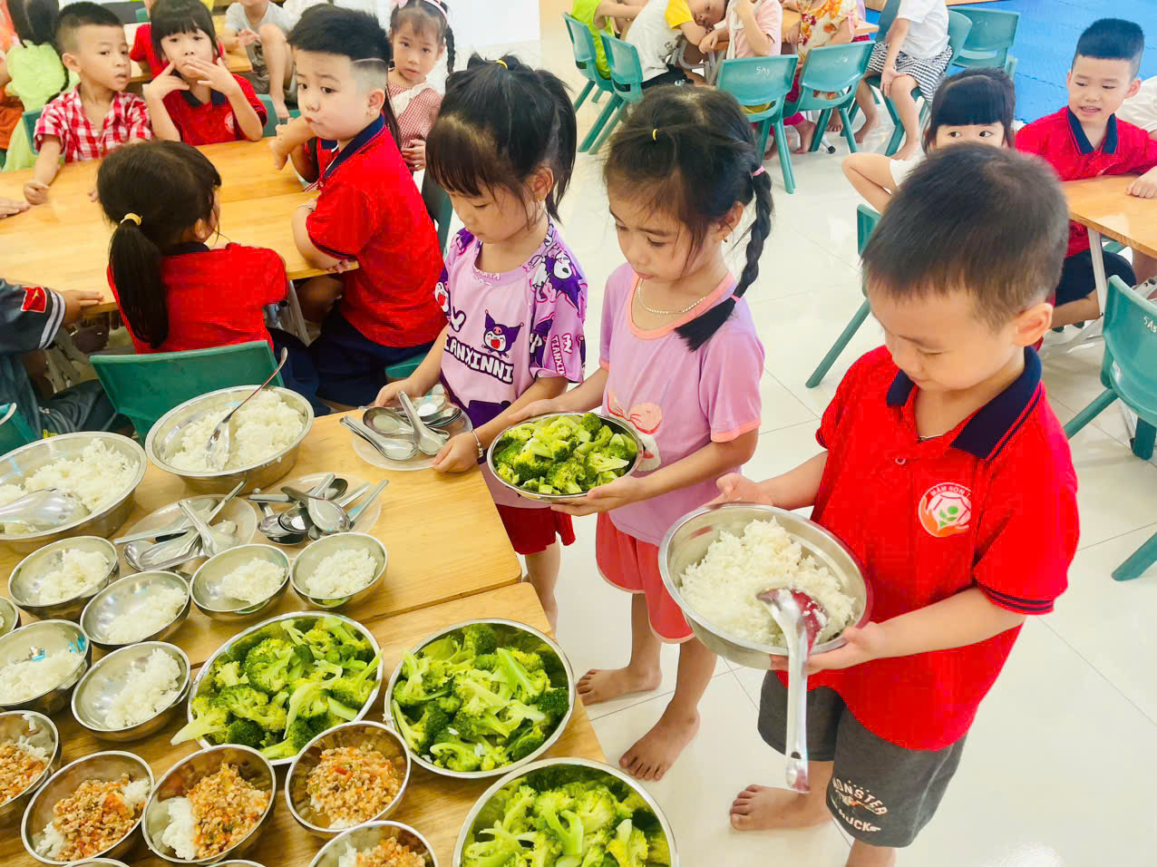 🍀 Các cô giáo luôn hướng dẫn trẻ lấy lượng cơm vừa đủ, biết chia sẻ cho bạn, giữ gìn vệ sinh và không làm rơi vãi thức ăn. Trong quá trình đó, trẻ cảm thấy vui khi được tự phục vụ bản thân mình và thấy mình 🌻 “giỏi như người lớn”. 🌻