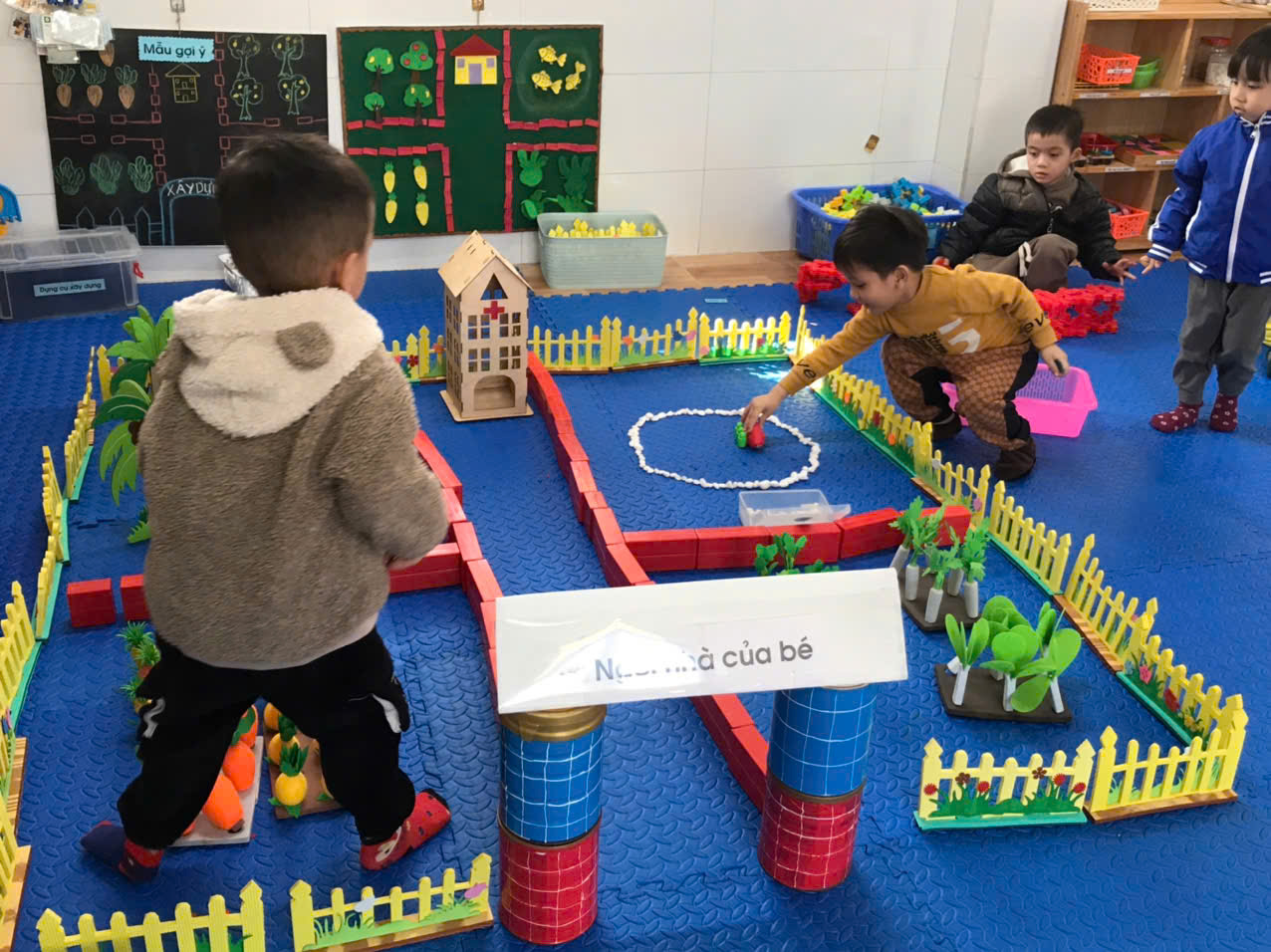 Cô giáo luôn quan sát, gợi mở và hỗ trợ khi cần để trẻ được học mà chơi – chơi mà học. Những công trình xây dựng sáng tạo, những bức tranh đầy màu sắc, hay những màn đóng vai “bán hàng – nấu ăn” dễ thương đều là minh chứng cho sự phát triển tự nhiên của các con.