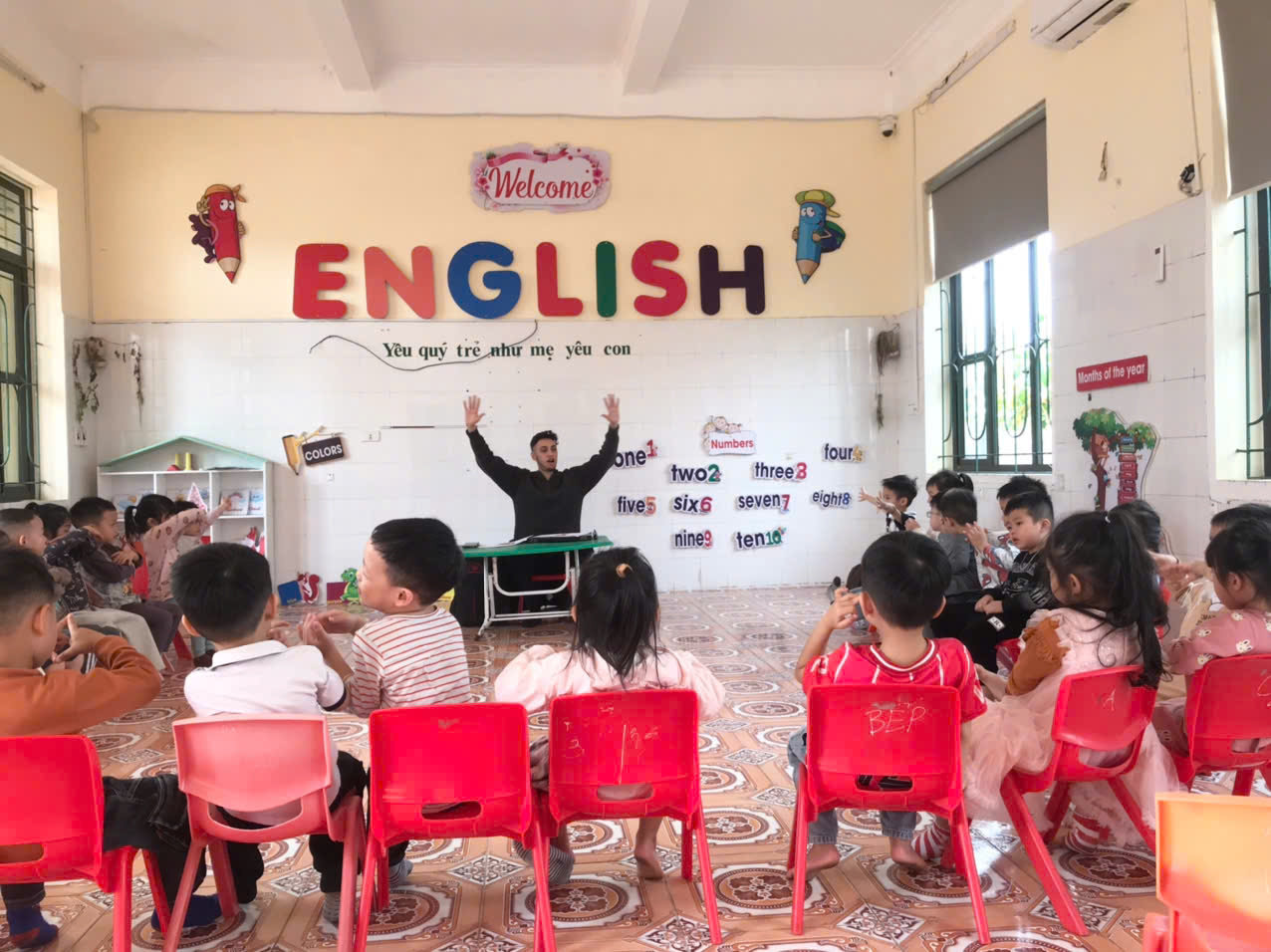 Trong mỗi tiết học, các con mạnh dạn phát âm, tự tin giao tiếp những từ vựng, câu chào hỏi đơn giản bằng tiếng Anh. Không chỉ giúp trẻ làm quen với ngôn ngữ quốc tế, giờ học còn góp phần phát triển khả năng ghi nhớ, phản xạ và sự tự tin cho trẻ ngay từ những năm đầu đời.