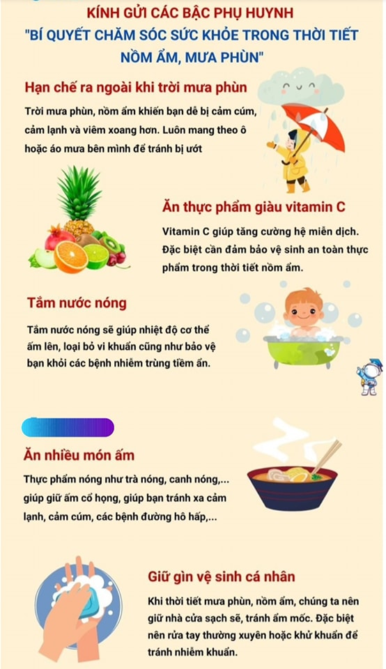 Trong thời tiết mưa phùn, nồm ẩm, nên giữ nhà cửa sạch sẽ, tránh ẩm mốc. Đặc biệt nên rửa tay thường xuyên hoặc khử khuẩn để tránh nhiễm khuẩn.