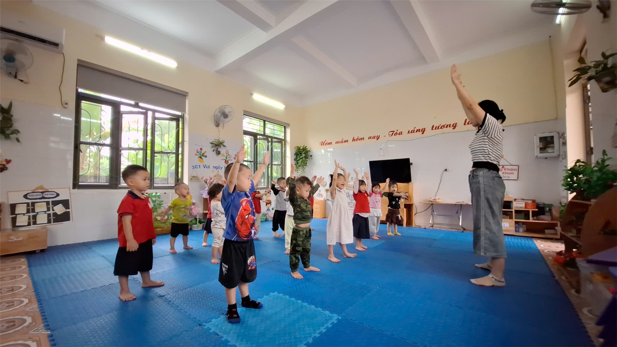 ✨ Những chuyển động đều đặn giúp cơ thể bé nóng lên, tăng độ linh hoạt, tạo tinh thần thoải mái và sẵn sàng cho giờ vận động.
