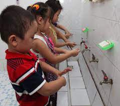 • Yêu cầu học sinh rửa tay với xà phòng hoặc dung dịch sát khuẩn tay tại các thời điểm: Trước khi vào lớp học, trước và sau khi ăn, sau mỗi giờ ra chơi và nghỉ giữa giờ, trước khi ra về, khi cần thiết.
