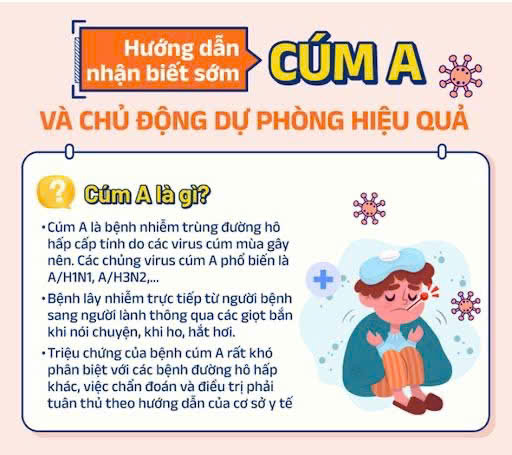 🌟 Dấu hiệu nhận biết của bệnh cúm A: sốt cao đột ngột trên 38 độ C, ho, đau họng, đau đầu, đau cơ, mỏi mệt. Một số trường hợp có thể suy hô hấp dẫn đến tử vong.