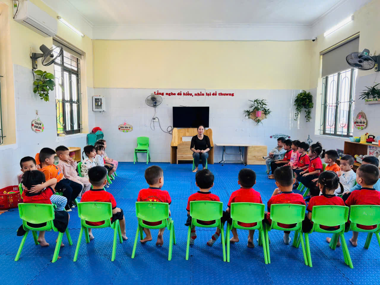 Ngoài việc dạy trẻ hát, vận động nhịp nhàng theo lời bài hát còn được thể hiện rất hay khi kết hợp với nhiều loại dụng cụ âm nhạc giúp trẻ tập phối hợp được nhịp nhàng hơn, chính xác hơn, khả năng phán đoán được tốt hơn. Qua đó giúp trẻ hoạt bát, nhanh nhẹn, có tư thế đẹp, duyên dáng.